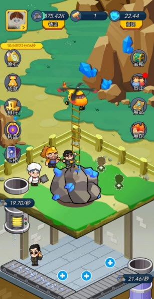 1、这种玩法和淘金城镇很相似,核心围绕挖矿展开,你能够招募并解锁更多矿工,以此提升自己的挖矿效率。