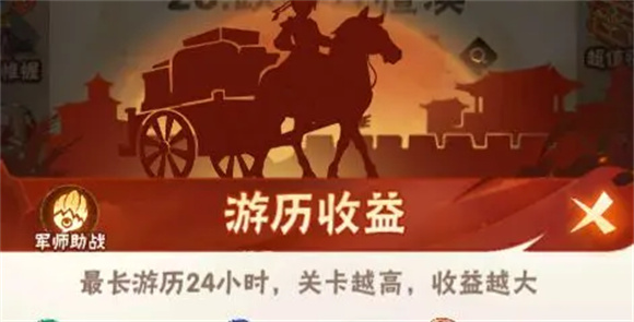 5、游历:遇关不过先游历,官职对游历的要求较高,游历还会偶尔产出装备,特定时间还有友情令