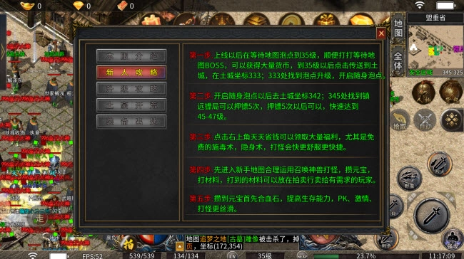1、第一步:游戏上线后,先在等待地图通过泡点升级到35级,期间可以顺便挑战等待地图里的BOSS,能获取不少货币;等达到35级后,点击传送功能前往土城,在土城坐标333:333的位置找到泡点升级的入口,开启随身泡点功能。