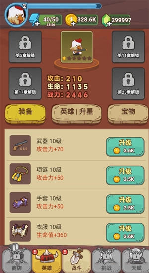 3、通过关卡后能得到奖励,可在大厅给战斗鸡升级,增强其基础能力