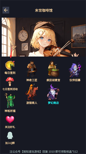 1、进入末世咖啡馆,领取每日签到奖励!