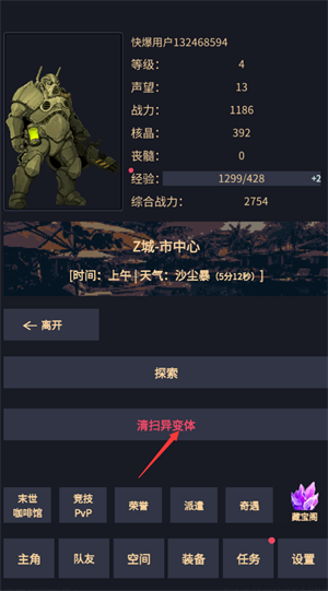 6、点击“清扫异变”选项,进入战斗环节(击败小怪有概率获取升级所需的材料)