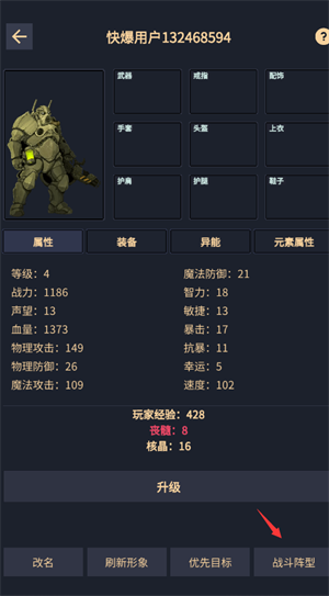 5、进入主角界面后点击战斗阵型选项,将伙伴添加到战斗阵容中。别忘了保存设置好的阵型。