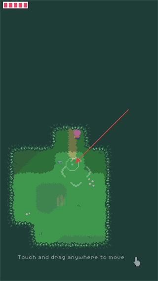 1、在该游戏界面中,遵循提示进行操作,触摸屏幕任意处并拖动,即可控制角色移动至目标区域。