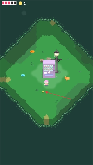 4、击败史莱姆后会掉落金币,操纵角色收集该硬币,收集后界面上方的金币数量会相应增加。