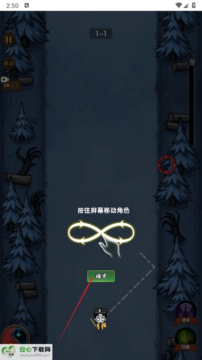 2、然后按住屏幕移动角色