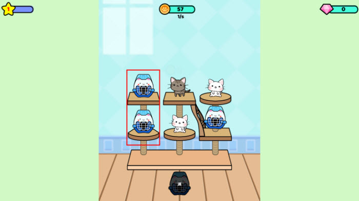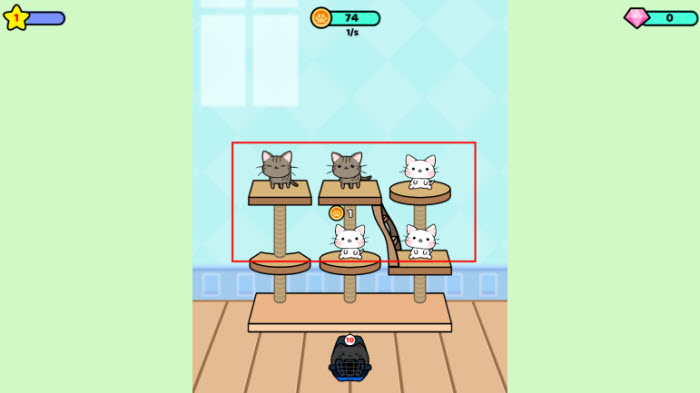 这是一款让养猫充满乐趣的小游戏,架子上摆放着各式各样的猫咪,你只需把两只相同的猫咪合并,就能得到一个全新品种的猫咪。