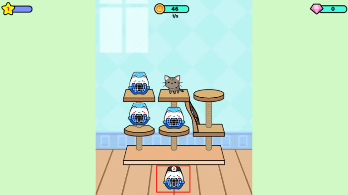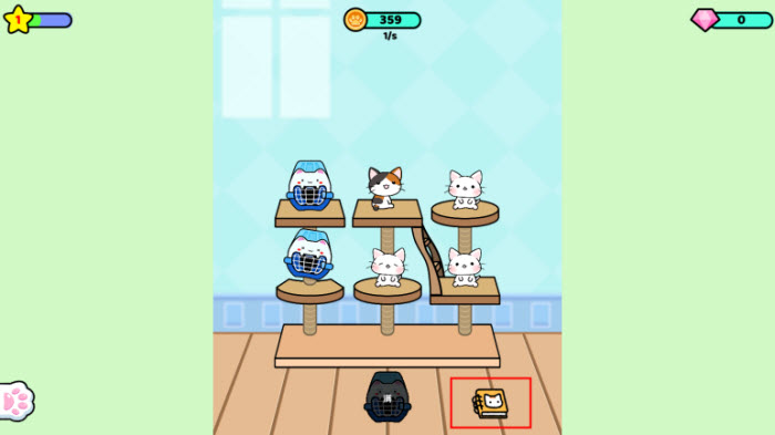 1、在当前页面安装快乐撸猫游戏并打开。屏幕下方的猫笼设有倒计时,当数字归零,就能获得新的猫咪。