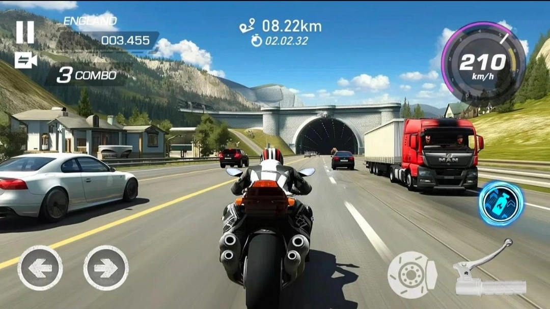 极速前进是一款热门的摩托竞速,在各种地图之中疾驰冲刺,顺利完成接连不断的关卡挑战,可以看到超高品质的驾驶界面和特效情景,一路上也可以看到许多别的车辆,要确保好驾驶的安全,实时呈现出您驾驶的各种参数情况!
