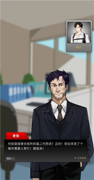 1、首先进入富豪侦探游戏,这里会开始游戏剧情;