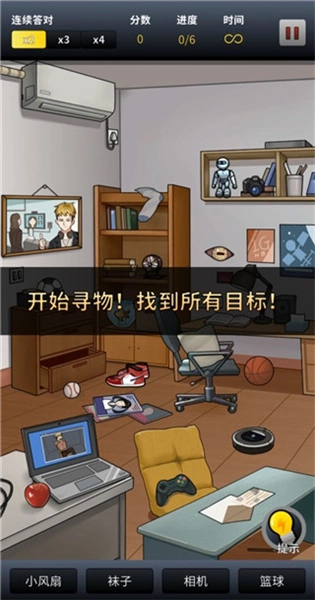 3、案发现场藏着不少线索,按照箭头的提示,点击篮球试试看。