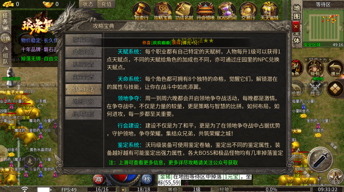 6、坐骑系统:在玛法大陆上存在着绝世坐骑,它们不仅能为你带来战力方面的加成,当坐骑达到满级后还能够进行骑乘,充分展现出王者的风范,关于坐骑的相关信息可以通过行会领地的马倌来了解。