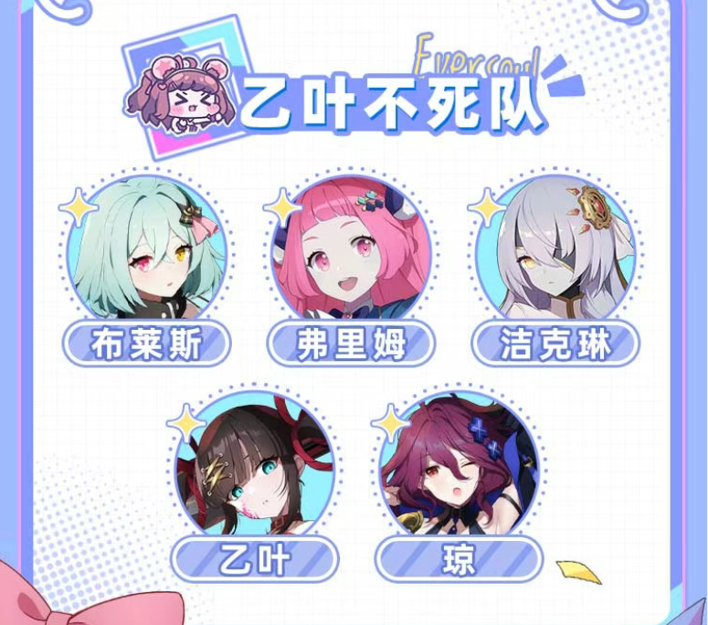 乙叶不死队:布莱斯、弗里姆、乙叶、琼、洁克琳