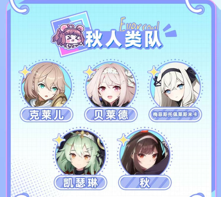 秋人类队:克莱儿、贝莱德、凯瑟琳、梅菲斯托佩莱斯米卡、秋