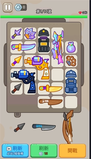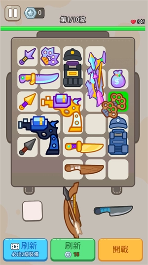 1、点击刷新按钮在下方刷新出新的武器装备,把他们拖到背包格子当中