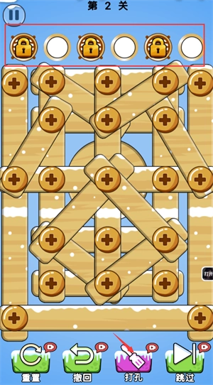 1、玩家需要把螺丝放到指定位置,使木块掉落,即可获得胜利