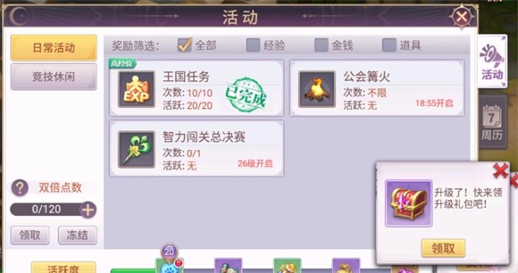 3、角色等级达到15级时将开启国王任务,该任务最多可完成10次,完成后能获取丰厚的经验奖励。