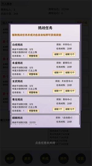 3、玩家可以用过完成挑战任务来获得各种奖励