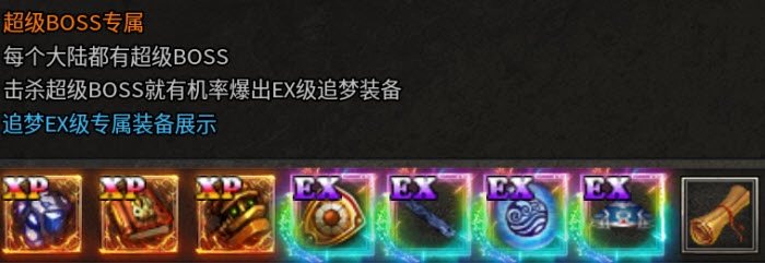 击杀超级BOSS就有机率爆出EX级追梦装备