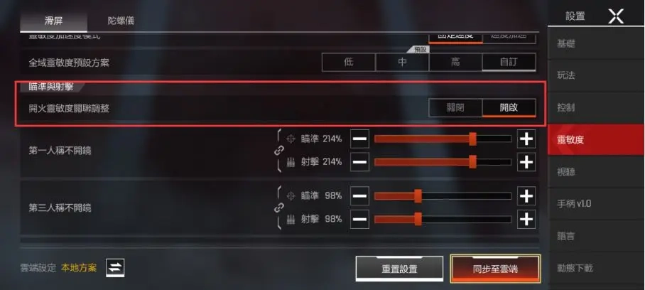 当瞄准与开火灵敏度设置为同步状态时,镜头的操控手感能始终维持一致,这对快速转身和精准跟枪都十分有利,能让玩家在中近距离的跟枪表现更稳定;要是关闭同步功能,玩家就能分别调整开镜和开火时的灵敏度,之后还可以依据自己的操作习惯来设置压枪灵敏度,这样在射击远距离目标时会更精准。