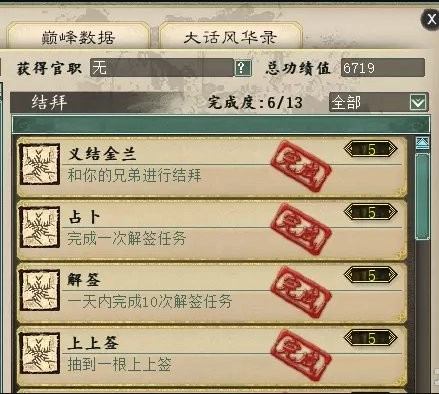 结拜的时候,建议五个人组队,这样能更快地完成解签任务。