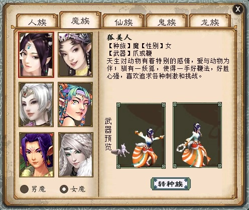 毕竟大话里有五个种族,分别是人、魔、仙、鬼、龙,所以在选择种族时,得先了解清楚每个种族的特性。