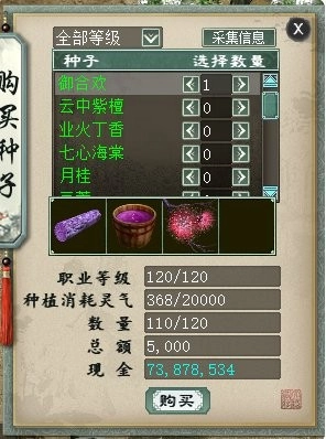 如下图所示,我们挑选一根消耗368点灵气的御合欢木,购买一个。
