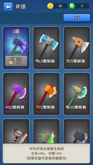 2、游戏内设有多种可解锁的斧头,解锁每种斧头需消耗不同数量的金币,助力玩家快速提升角色的战斗能力。