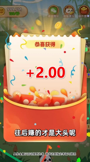 2、随着熊猫等级的提升,玩家可以获得相应的红包奖励。