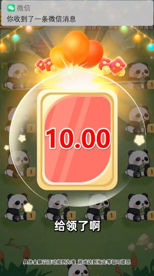 是真的,但是只有0.3。游戏中玩家主要通过合成熊猫、闯关以及看视频广告来获得红包,累积的红包按照百分比来提现。老套路了,这种红包游戏都是满0.3就能提,拿完0.3可以直接卸载,不必浪费时间。