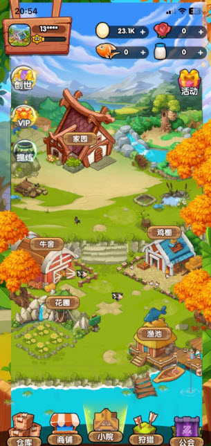 目前主要有4种建筑,分别是:家园、牛舍、鸡棚、花圃。