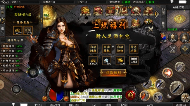 1、本服上线领取各种新人福利,然后选择自身合意的种族职业开启征程。