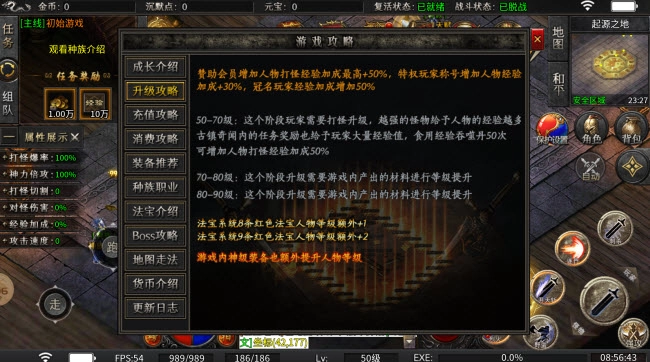 3、古镇奇闻内的任务奖励也给子玩家大量经验值,食用经验吞噬丹50次可增加人物打怪经验加成50%。