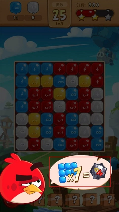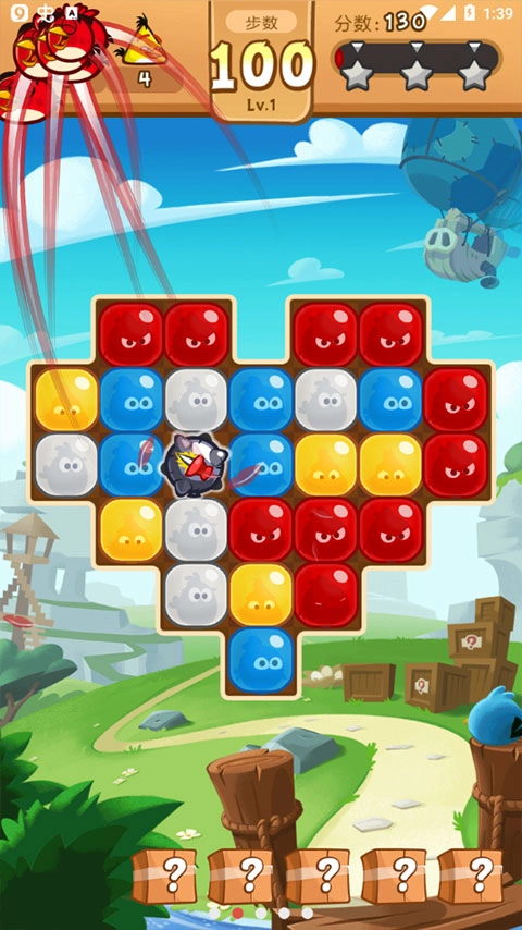 打开愤怒的小鸟爆破游戏,只要有两个或两个以上颜色相同的气球,就能将它们消除。