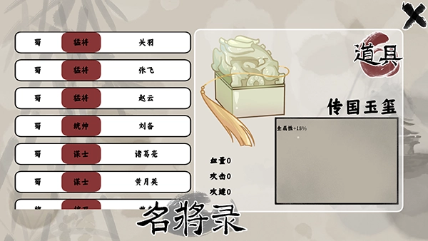 进入游戏首页可以先查看一下名将录。