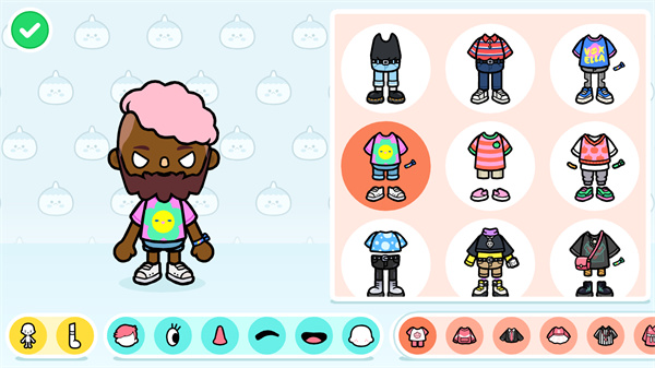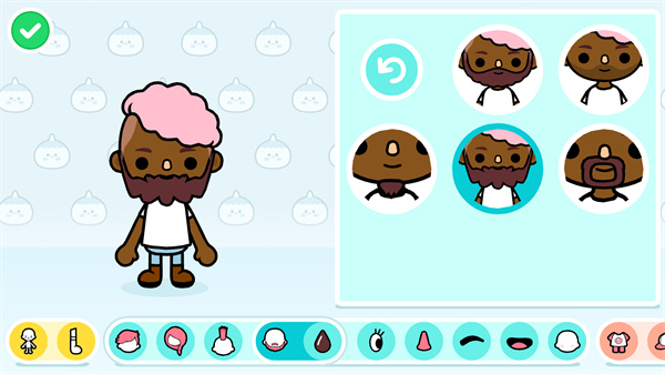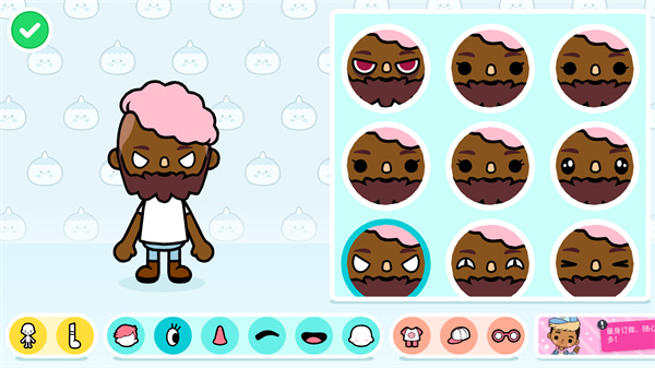 游戏里有不少卡通角色,你可以点击上方的图标来不断切换,接着挑选合适的发型和发型颜色,甚至还能搭配胡子呢。
