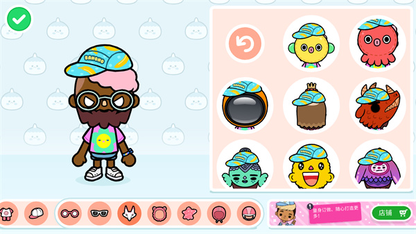 5、接着挑选帽子、眼镜之类的道具,就能完成创建,最后点击左上角的图标,保存好就可以了。