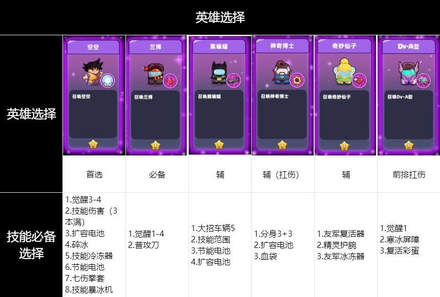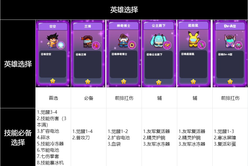 1. 开局进行英雄选择时,主要选用空空,兰博作为辅助。若在前3关未能刷出兰博,建议重新开始游戏,这样能避免时间的浪费。要是出现(科学家、马克、忍者),同样建议重开。
