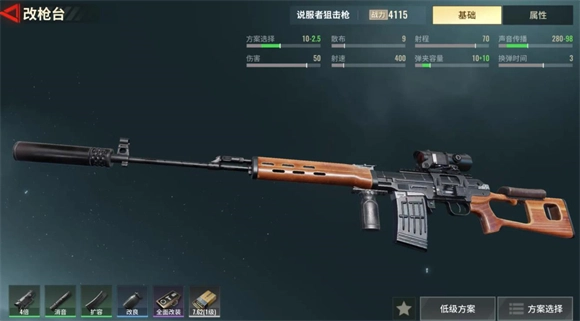 3、远距离狙击组合:说服者狙击枪+改良握把(后坐力固化词条)+4倍镜+消音器+扩容弹夹。说服者狙击枪射速与稳定性优秀,搭配改良握把可以降低射击抖动,配以后坐力固化词条时,蹲下、趴下时后坐力大大缩减,再远的距离也能保持稳定的火力输出。