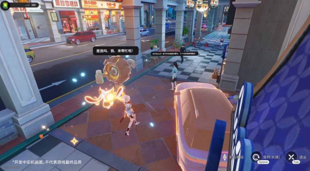 将强交互设计融入大世界探索,让《望月》的任务体验变得更轻量化——它不再要求玩家在某个场景投入大量时间精力去推进长剧情、复杂谜题,而是转化为“遭遇各类即时性的短期需求,通过自身特殊能力加以解决”的模式。例如,当玩家遇到因车轮丢失而可能面临处罚的无助路人时,就能运用月链能力操控路边的车轮月灵,完成“补胎”动作,进而获得路人的感谢与奖励。