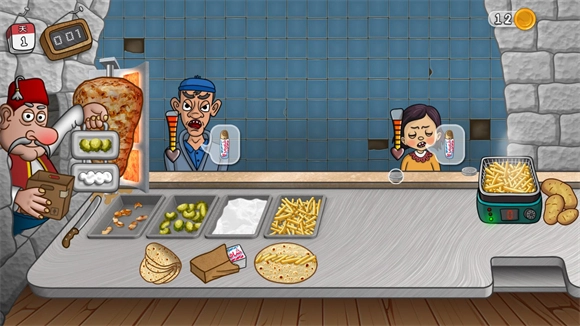 4、炸薯条的升级建议放在后期进行,前中期阶段不推荐升级,否则会让人忙得不可开交。另外,沙威玛的价格和烤架也可以升级,但前中期绝对不要开启这些升级,因为会增加额外的操作步骤,十分繁琐。