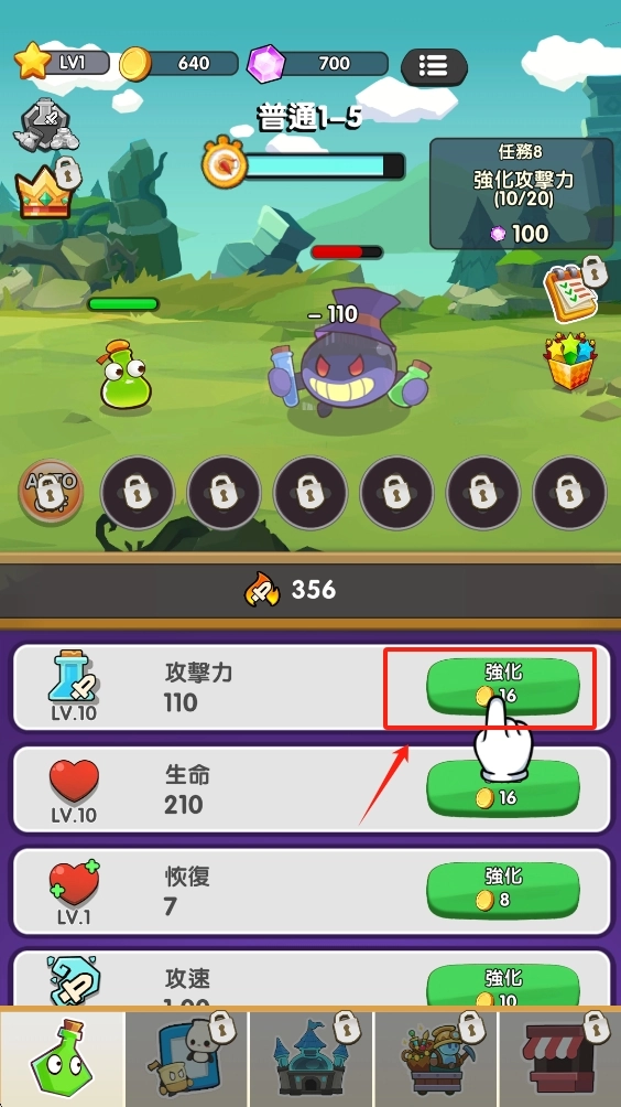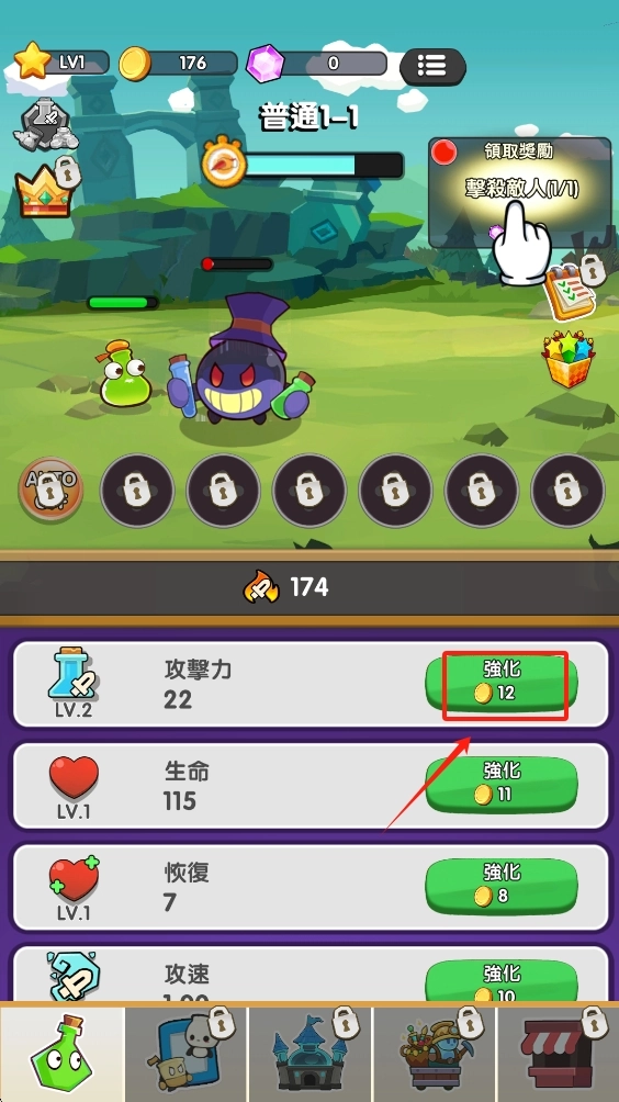 1、点击“强化”按钮,可提升攻击力,增强防御塔的战斗能力。