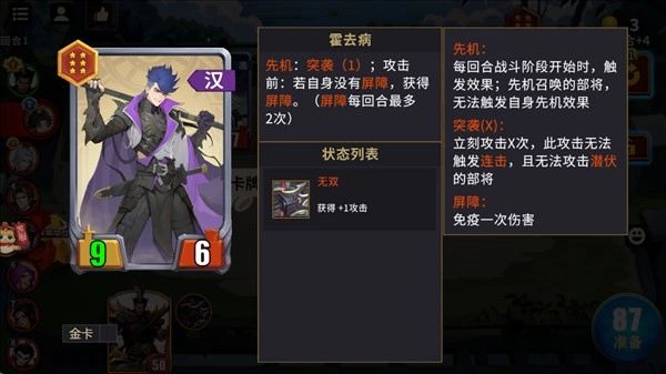 2、部将卡有两个重要属性,攻击力和生命值