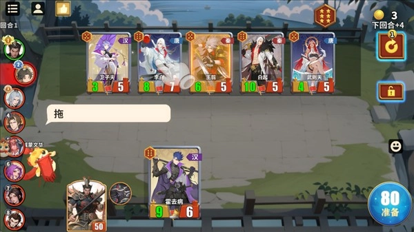 4、选好角色后就会正式开始,每一回合玩家都可以消耗金币在商店里购买角色