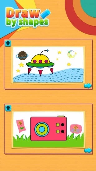 这是一款不可多得的幼儿游戏。它尊重儿童的天性,将学习画画转化为有趣的游戏,从孩子的兴趣点入手,通过简单的形状拼合出有趣的画面,让绘画变得简单又有趣。