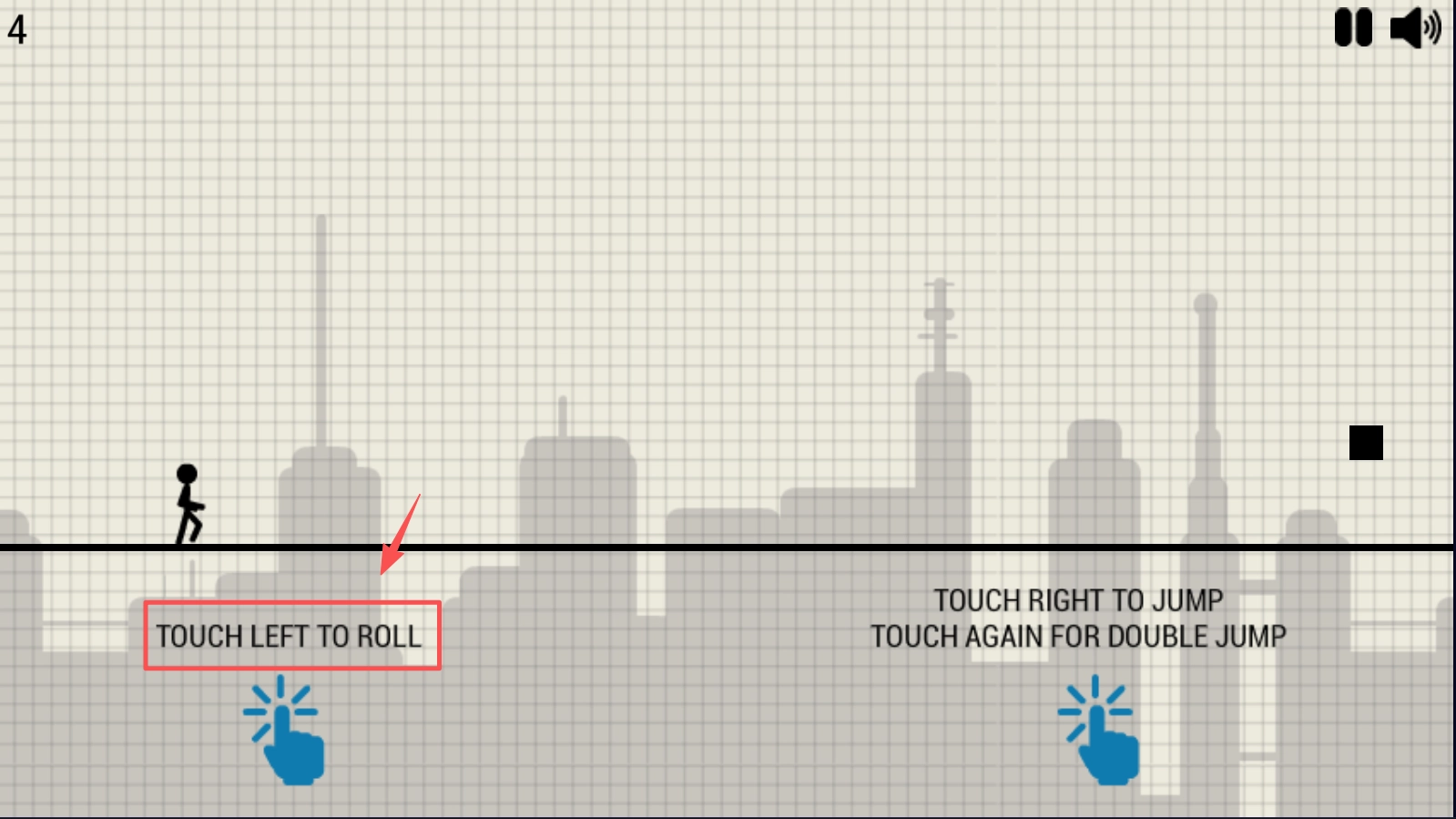 2、熟悉基础操作:在屏幕左侧滑动能让角色做出翻滚动作,点击右侧区域可完成跳跃,若在跳跃后再次点击右侧,还能触发二段跳效果。
