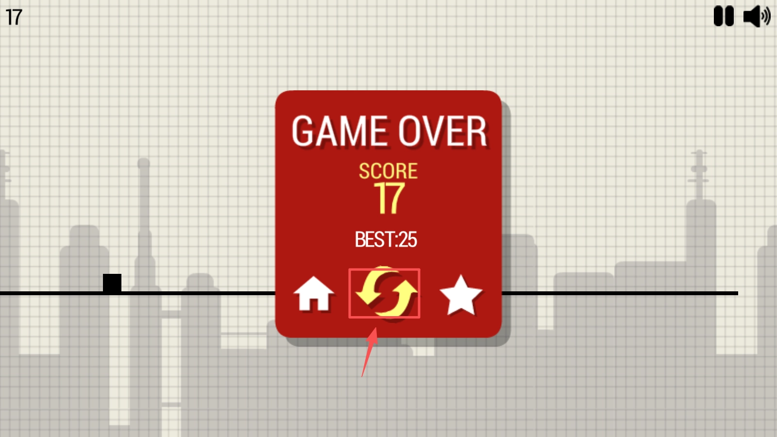 4、游戏结束界面,可选择重新开始或分享成绩,挑战更高分数。