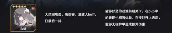 心纸作为五星角色,拥有大范围输出与高伤害的特性,既能助力玩家轻松攻克前期关卡,在后期也能展现出不俗的实力。