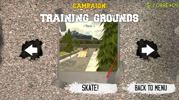 2、游戏为玩家提供很多的关卡,每个关卡都有不同的地图,点击SKATE开始游戏;