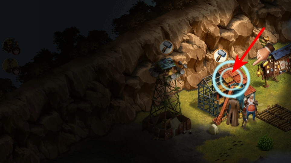 4、在建筑场景中,点击红色箭头指向的建筑区域,可触发与该建筑的互动如修复、探索推进剧情。